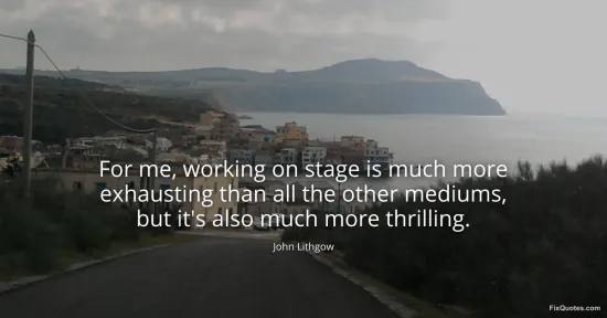 Lithgow, John. "For me, working on stage is much more exhausting than all the other mediums, but it's also much more thrilling." FixQuotes. January 15, 2026. https://fixquotes.com/quotes/for-me-working-on-stage-is-much-more-exhausting-144188/.