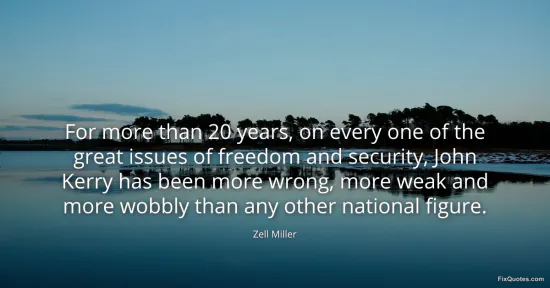 Miller, Zell. "For more than 20 years, on every one of the great issues of freedom and security, John Kerry has been more wrong, more weak and more wobbly than any other national figure." FixQuotes. January 16, 2026. https://fixquotes.com/quotes/for-more-than-20-years-on-every-one-of-the-great-118650/.