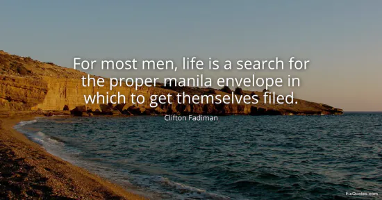 Fadiman, Clifton. (2026, January 15). For most men, life is a search for the proper manila envelope in which to get themselves filed. FixQuotes. https://fixquotes.com/quotes/for-most-men-life-is-a-search-for-the-proper-125062/