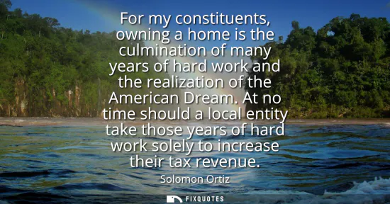"For my constituents, owning a home is the culmination of many years of hard work and the realization of the American Dream. At no time should a local entity take those years of hard work solely to increase their tax revenue"
