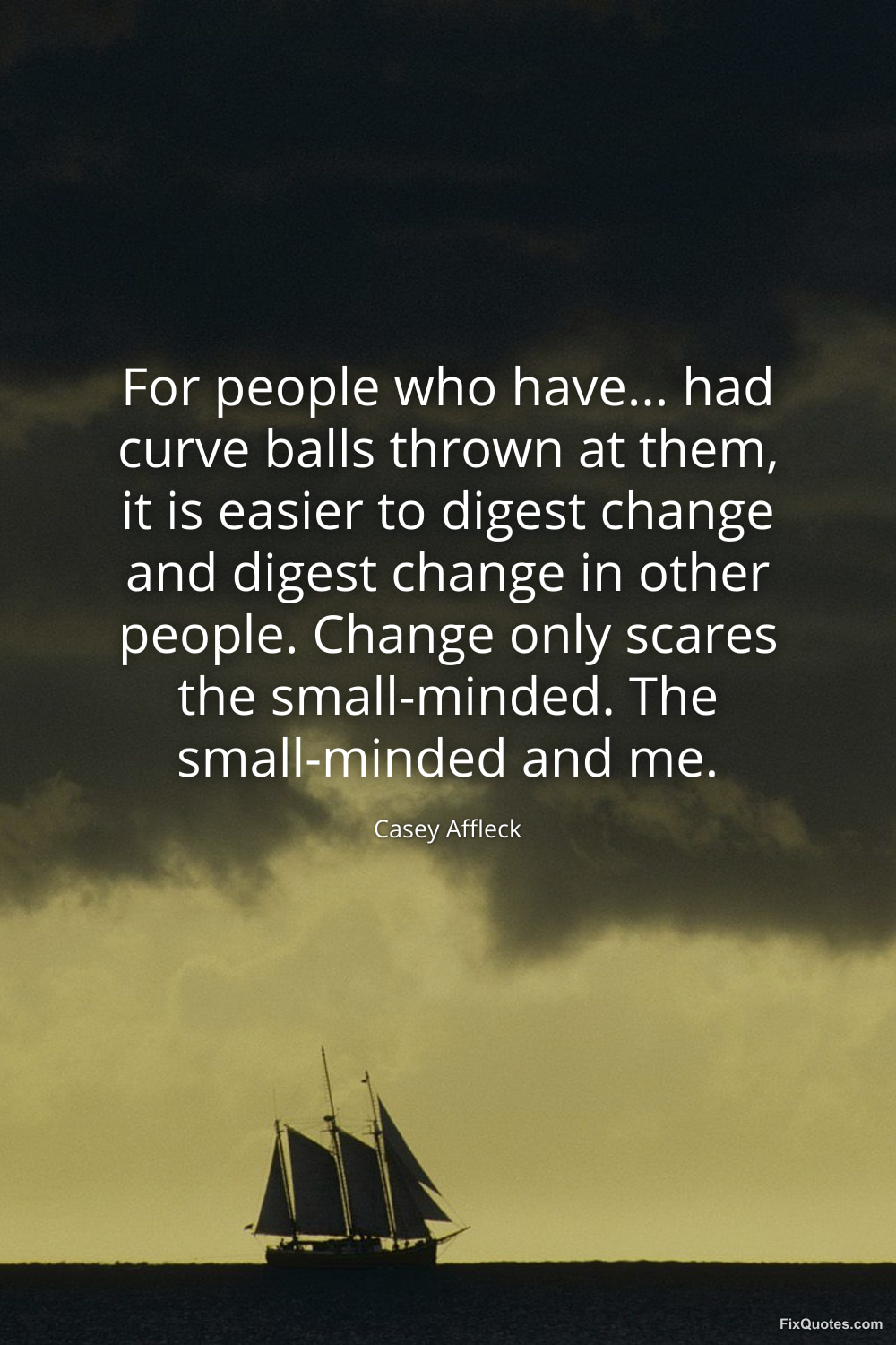 Affleck, Casey. (2026, January 17). For people who have... had curve balls thrown at them, it is easier to digest change and digest change in other people. Change only scares the small-minded. The small-minded and me. FixQuotes. https://fixquotes.com/quotes/for-people-who-have-had-curve-balls-thrown-at-43781/