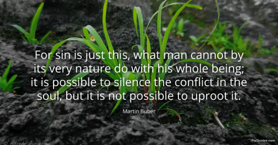Buber, Martin. "For sin is just this, what man cannot by its very nature do with his whole being; it is possible to silence the conflict in the soul, but it is not possible to uproot it." FixQuotes. January 18, 2026. https://fixquotes.com/quotes/for-sin-is-just-this-what-man-cannot-by-its-very-434/.