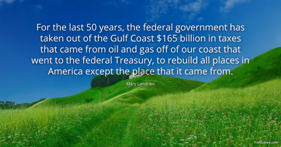 Landrieu, Mary. (2026, January 15). For the last 50 years, the federal government has taken out of the Gulf Coast $165 billion in taxes that came from oil and gas off of our coast that went to the federal Treasury, to rebuild all places in America except the place that it came from. FixQuotes. https://fixquotes.com/quotes/for-the-last-50-years-the-federal-government-has-147637/