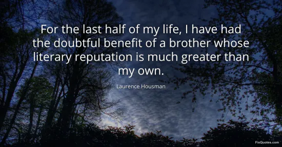 Housman, Laurence. "For the last half of my life, I have had the doubtful benefit of a brother whose literary reputation is much greater than my own." FixQuotes. February 18, 2026. https://fixquotes.com/quotes/for-the-last-half-of-my-life-i-have-had-the-81048/.