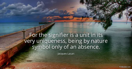 Lacan, Jacques. (2026, January 15). For the signifier is a unit in its very uniqueness, being by nature symbol only of an absence. FixQuotes. https://fixquotes.com/quotes/for-the-signifier-is-a-unit-in-its-very-164836/