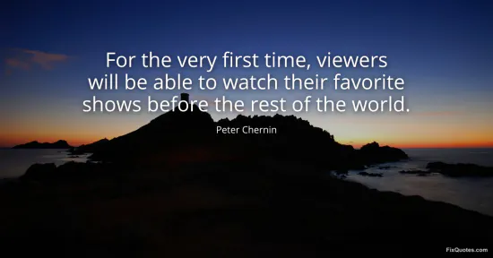 Chernin, Peter. "For the very first time, viewers will be able to watch their favorite shows before the rest of the world." FixQuotes. January 16, 2026. https://fixquotes.com/quotes/for-the-very-first-time-viewers-will-be-able-to-110288/.