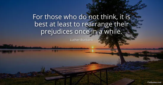 Burbank, Luther. "For those who do not think, it is best at least to rearrange their prejudices once in a while." FixQuotes. January 18, 2026. https://fixquotes.com/quotes/for-those-who-do-not-think-it-is-best-at-least-to-15763/.