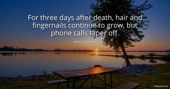Carson, Johnny. (2026, February 16). For three days after death, hair and fingernails continue to grow, but phone calls taper off. FixQuotes. https://fixquotes.com/quotes/for-three-days-after-death-hair-and-fingernails-117931/