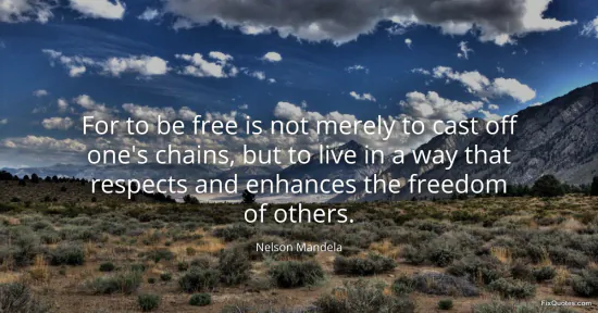 Mandela, Nelson. "For to be free is not merely to cast off one's chains, but to live in a way that respects and enhances the freedom of others." FixQuotes. January 18, 2026. https://fixquotes.com/quotes/for-to-be-free-is-not-merely-to-cast-off-ones-1019/.