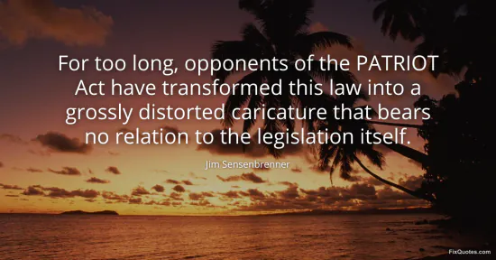 Sensenbrenner, Jim. (2026, January 15). For too long, opponents of the PATRIOT Act have transformed this law into a grossly distorted caricature that bears no relation to the legislation itself. FixQuotes. https://fixquotes.com/quotes/for-too-long-opponents-of-the-patriot-act-have-67141/