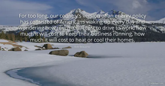 Beauprez, Bob. (2026, January 15). For too long, our country's version of an energy policy has consisted of Americans waking up every day and wondering how much it will cost to drive to work, how much it will cost to keep their business running, how much it will cost to heat or cool their homes. FixQuotes. https://fixquotes.com/quotes/for-too-long-our-countrys-version-of-an-energy-154399/