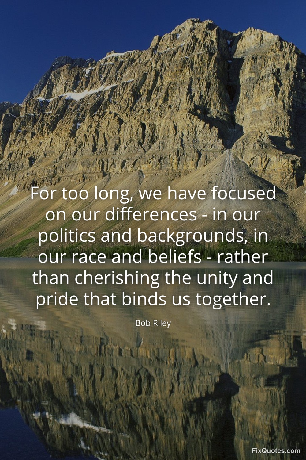 Riley, Bob. (2026, January 17). For too long, we have focused on our differences - in our politics and backgrounds, in our race and beliefs - rather than cherishing the unity and pride that binds us together. FixQuotes. https://fixquotes.com/quotes/for-too-long-we-have-focused-on-our-differences-39269/
