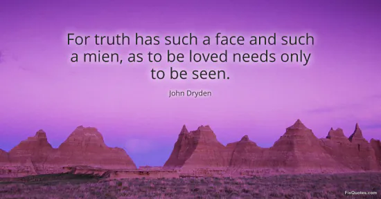 Dryden, John. "For truth has such a face and such a mien, as to be loved needs only to be seen." FixQuotes. January 17, 2026. https://fixquotes.com/quotes/for-truth-has-such-a-face-and-such-a-mien-as-to-69244/.