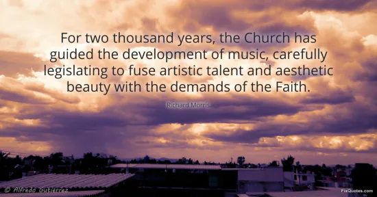 Morris, Richard. (2026, January 18). For two thousand years, the Church has guided the development of music, carefully legislating to fuse artistic talent and aesthetic beauty with the demands of the Faith. FixQuotes. https://fixquotes.com/quotes/for-two-thousand-years-the-church-has-guided-the-23947/