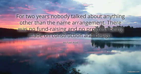 Arad, Michael. "For two years nobody talked about anything other than the name arrangement. There was no fund-raising and no progress being made on construction and design." FixQuotes. January 17, 2026. https://fixquotes.com/quotes/for-two-years-nobody-talked-about-anything-other-77593/.