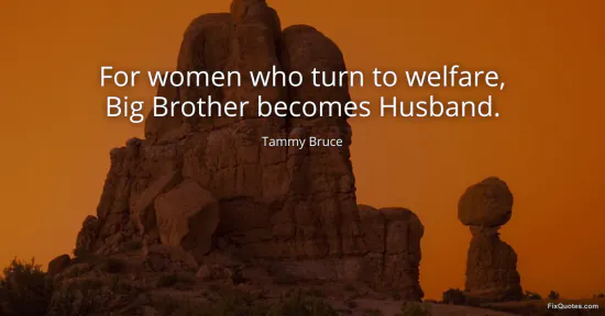 Bruce, Tammy. (2026, January 15). For women who turn to welfare, Big Brother becomes Husband. FixQuotes. https://fixquotes.com/quotes/for-women-who-turn-to-welfare-big-brother-becomes-169727/