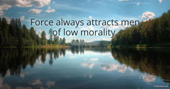 Einstein, Albert. (2026, January 17). Force always attracts men of low morality. FixQuotes. https://fixquotes.com/quotes/force-always-attracts-men-of-low-morality-25278/