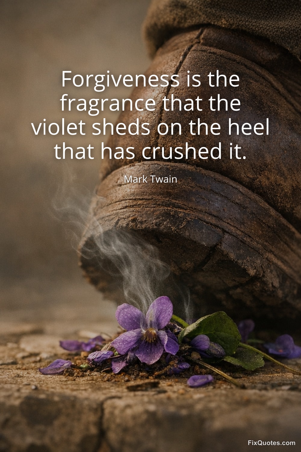 Context matters: Twain wrote in post-Civil War America, skeptical of sanctimony, allergic to pious slogans, and keenly aware of how moral language can prettify brutality - from politics to religion to everyday social hierarchies. By choosing the violet, he invokes something small, domestic, easily destroyed. The line invites admiration for forgiveness, then leaves a sour aftertaste: if we praise the violet too loudly, we may be excusing the boot.