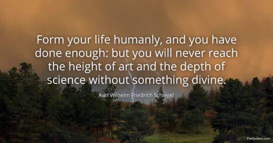 Schlegel, Karl Wilhelm Friedrich. "Form your life humanly, and you have done enough: but you will never reach the height of art and the depth of science without something divine." FixQuotes. January 18, 2026. https://fixquotes.com/quotes/form-your-life-humanly-and-you-have-done-enough-12940/.