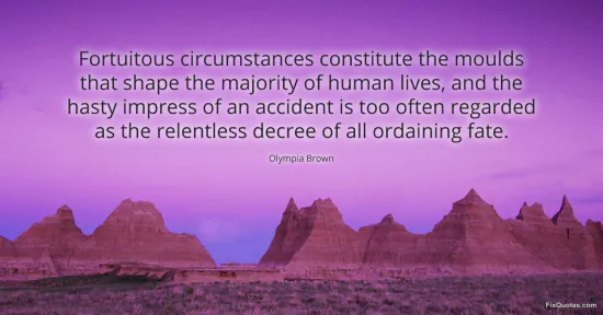 Brown, Olympia. (2026, January 15). Fortuitous circumstances constitute the moulds that shape the majority of human lives, and the hasty impress of an accident is too often regarded as the relentless decree of all ordaining fate. FixQuotes. https://fixquotes.com/quotes/fortuitous-circumstances-constitute-the-moulds-169625/