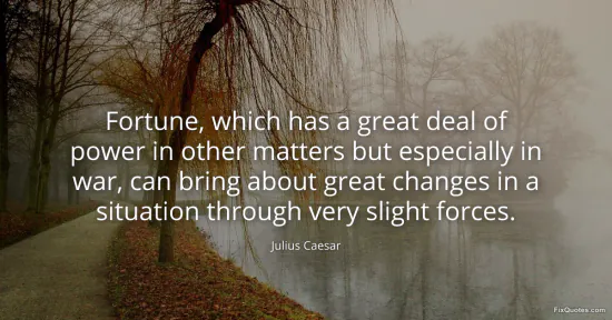 Caesar, Julius. "Fortune, which has a great deal of power in other matters but especially in war, can bring about great changes in a situation through very slight forces." FixQuotes. January 17, 2026. https://fixquotes.com/quotes/fortune-which-has-a-great-deal-of-power-in-other-25761/.