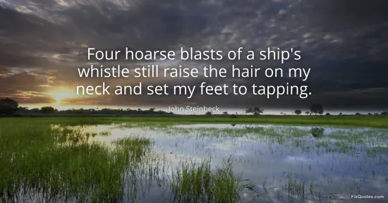 Steinbeck, John. (2026, January 17). Four hoarse blasts of a ship's whistle still raise the hair on my neck and set my feet to tapping. FixQuotes. https://fixquotes.com/quotes/four-hoarse-blasts-of-a-ships-whistle-still-raise-26478/