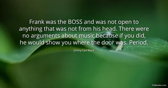 Black, Jimmy Carl. (2026, January 15). Frank was the BOSS and was not open to anything that was not from his head. There were no arguments about music because if you did, he would show you where the door was. Period. FixQuotes. https://fixquotes.com/quotes/frank-was-the-boss-and-was-not-open-to-anything-158647/