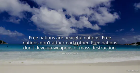 "Free nations are peaceful nations. Free nations don't attack each other. Free nations don't develop weapons of mass destruction." FixQuotes, 15 Jan. 2026, https://fixquotes.com/quotes/free-nations-are-peaceful-nations-free-nations-17797/. Accessed 12 Feb. 2026.