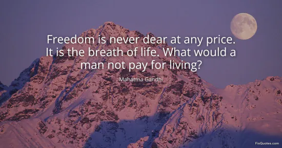 Gandhi, Mahatma. (2026, January 17). Freedom is never dear at any price. It is the breath of life. What would a man not pay for living? FixQuotes. https://fixquotes.com/quotes/freedom-is-never-dear-at-any-price-it-is-the-26055/
