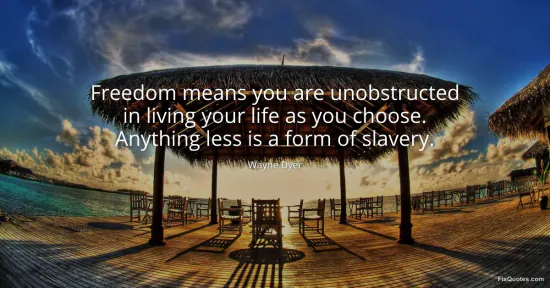 Dyer, Wayne. (2026, January 18). Freedom means you are unobstructed in living your life as you choose. Anything less is a form of slavery. FixQuotes. https://fixquotes.com/quotes/freedom-means-you-are-unobstructed-in-living-your-2307/