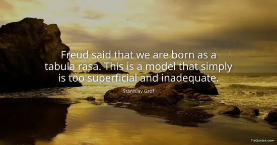 Grof is picking a fight with psychology’s clean-room fantasy: the idea that a human arrives as blank paper, then culture and parenting do the writing. By invoking Freud, he’s not just disputing a detail in psychoanalytic history; he’s signaling that even the grand old architects of depth psychology still smuggled in a strangely shallow origin story. “Tabula rasa” becomes a rhetorical straw man for a wider professional habit: treating experience as something that starts at birth and stays comfortably biographical.