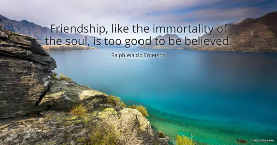 Emerson, Ralph Waldo. "Friendship, like the immortality of the soul, is too good to be believed." FixQuotes. January 17, 2026. https://fixquotes.com/quotes/friendship-like-the-immortality-of-the-soul-is-33941/.