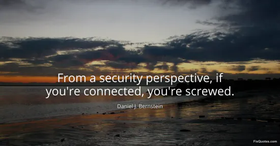 Bernstein, Daniel J. "From a security perspective, if you're connected, you're screwed." FixQuotes. January 15, 2026. https://fixquotes.com/quotes/from-a-security-perspective-if-youre-connected-50119/.