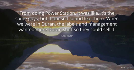 Taylor, Andy. (2026, January 16). From doing Power Station, it was like, it's the same guys, but it doesn't sound like them. When we were in Duran, the labels and management wanted more Duran stuff so they could sell it. FixQuotes. https://fixquotes.com/quotes/from-doing-power-station-it-was-like-its-the-same-137764/