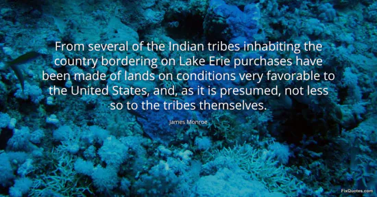 Monroe, James. (2026, January 16). From several of the Indian tribes inhabiting the country bordering on Lake Erie purchases have been made of lands on conditions very favorable to the United States, and, as it is presumed, not less so to the tribes themselves. FixQuotes. https://fixquotes.com/quotes/from-several-of-the-indian-tribes-inhabiting-the-90285/