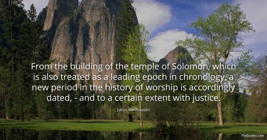 Wellhausen, Julius. (2026, January 17). From the building of the temple of Solomon, which is also treated as a leading epoch in chronology, a new period in the history of worship is accordingly dated, - and to a certain extent with justice. FixQuotes. https://fixquotes.com/quotes/from-the-building-of-the-temple-of-solomon-which-80959/