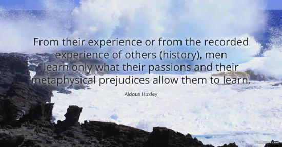 Huxley, Aldous. "From their experience or from the recorded experience of others (history), men learn only what their passions and their metaphysical prejudices allow them to learn." FixQuotes. January 18, 2026. https://fixquotes.com/quotes/from-their-experience-or-from-the-recorded-3106/.