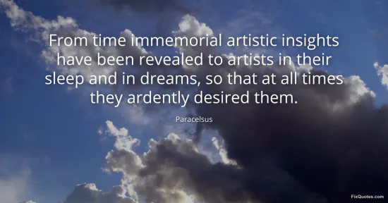 Paracelsus. (2026, January 15). From time immemorial artistic insights have been revealed to artists in their sleep and in dreams, so that at all times they ardently desired them. FixQuotes. https://fixquotes.com/quotes/from-time-immemorial-artistic-insights-have-been-147374/