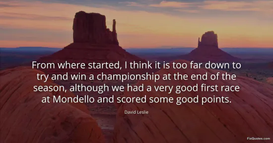 Leslie, David. "From where started, I think it is too far down to try and win a championship at the end of the season, although we had a very good first race at Mondello and scored some good points." FixQuotes. January 17, 2026. https://fixquotes.com/quotes/from-where-started-i-think-it-is-too-far-down-to-67622/.