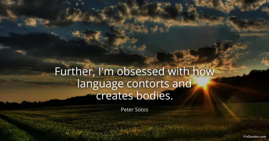 Sotos, Peter. (2026, January 16). Further, I'm obsessed with how language contorts and creates bodies. FixQuotes. https://fixquotes.com/quotes/further-im-obsessed-with-how-language-contorts-112728/