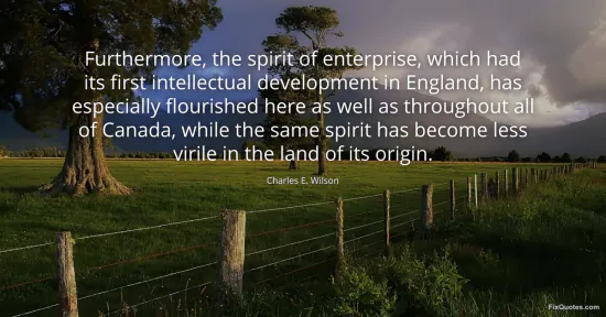 Wilson, Charles E. "Furthermore, the spirit of enterprise, which had its first intellectual development in England, has especially flourished here as well as throughout all of Canada, while the same spirit has become less virile in the land of its origin." FixQuotes. February 16, 2026. https://fixquotes.com/quotes/furthermore-the-spirit-of-enterprise-which-had-142095/.
