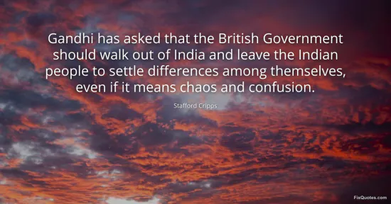 Cripps, Stafford. (2026, January 16). Gandhi has asked that the British Government should walk out of India and leave the Indian people to settle differences among themselves, even if it means chaos and confusion. FixQuotes. https://fixquotes.com/quotes/gandhi-has-asked-that-the-british-government-92082/