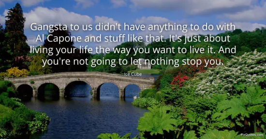 Cube, Ice. "Gangsta to us didn't have anything to do with Al Capone and stuff like that. It's just about living your life the way you want to live it. And you're not going to let nothing stop you." FixQuotes. January 15, 2026. https://fixquotes.com/quotes/gangsta-to-us-didnt-have-anything-to-do-with-al-153457/.