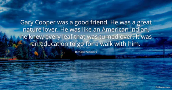 Widmark, Richard. "Gary Cooper was a good friend. He was a great nature lover. He was like an American Indian, he knew every leaf that was turned over. It was an education to go for a walk with him." FixQuotes. January 16, 2026. https://fixquotes.com/quotes/gary-cooper-was-a-good-friend-he-was-a-great-105885/.
