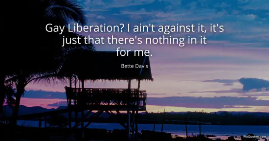 Davis, Bette. (2026, January 18). Gay Liberation? I ain't against it, it's just that there's nothing in it for me. FixQuotes. https://fixquotes.com/quotes/gay-liberation-i-aint-against-it-its-just-that-16776/