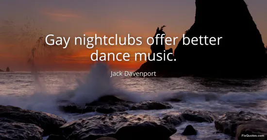 Davenport, Jack. "Gay nightclubs offer better dance music." FixQuotes. January 15, 2026. https://fixquotes.com/quotes/gay-nightclubs-offer-better-dance-music-163876/.