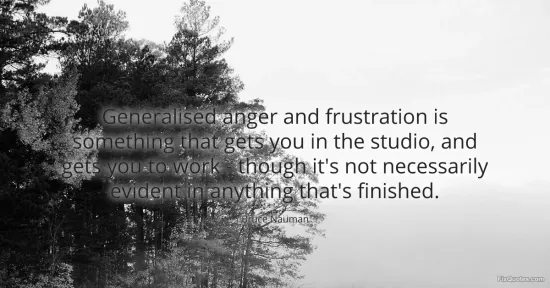Nauman, Bruce. "Generalised anger and frustration is something that gets you in the studio, and gets you to work - though it's not necessarily evident in anything that's finished." FixQuotes. January 17, 2026. https://fixquotes.com/quotes/generalised-anger-and-frustration-is-something-39874/.