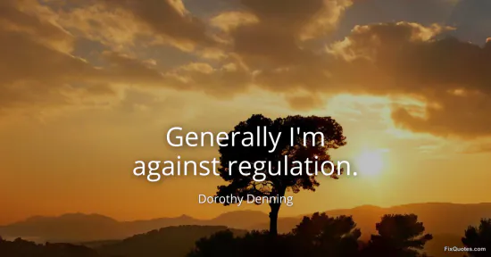Denning, Dorothy. (2026, January 17). Generally I'm against regulation. FixQuotes. https://fixquotes.com/quotes/generally-im-against-regulation-72925/