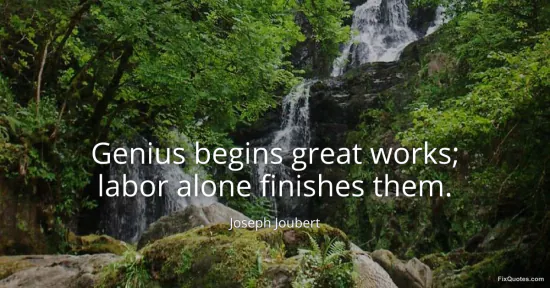 Joubert, Joseph. (2026, January 15). Genius begins great works; labor alone finishes them. FixQuotes. https://fixquotes.com/quotes/genius-begins-great-works-labor-alone-finishes-21292/