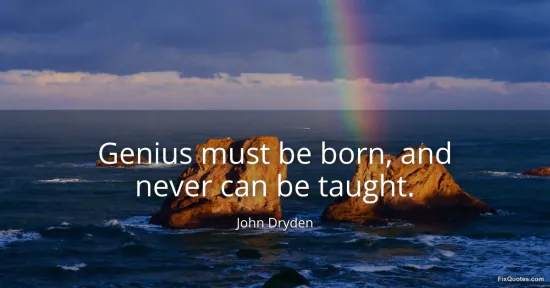 Dryden, John. "Genius must be born, and never can be taught." FixQuotes. January 15, 2026. https://fixquotes.com/quotes/genius-must-be-born-and-never-can-be-taught-151596/.